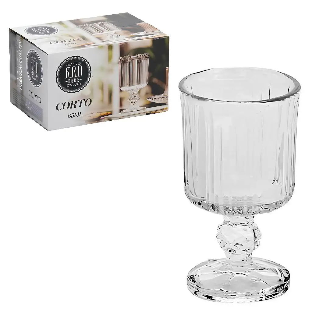 Verde Desen 6'lı Kahve Yanı Ayaklı Su Bardak Şeffaf 80ml