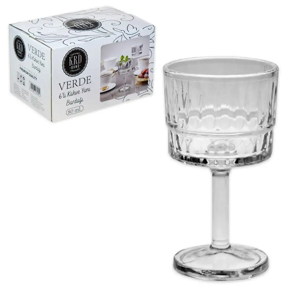 Verde Desen 6'lı Kahve Yanı Ayaklı Su Bardak Şeffaf 80ml