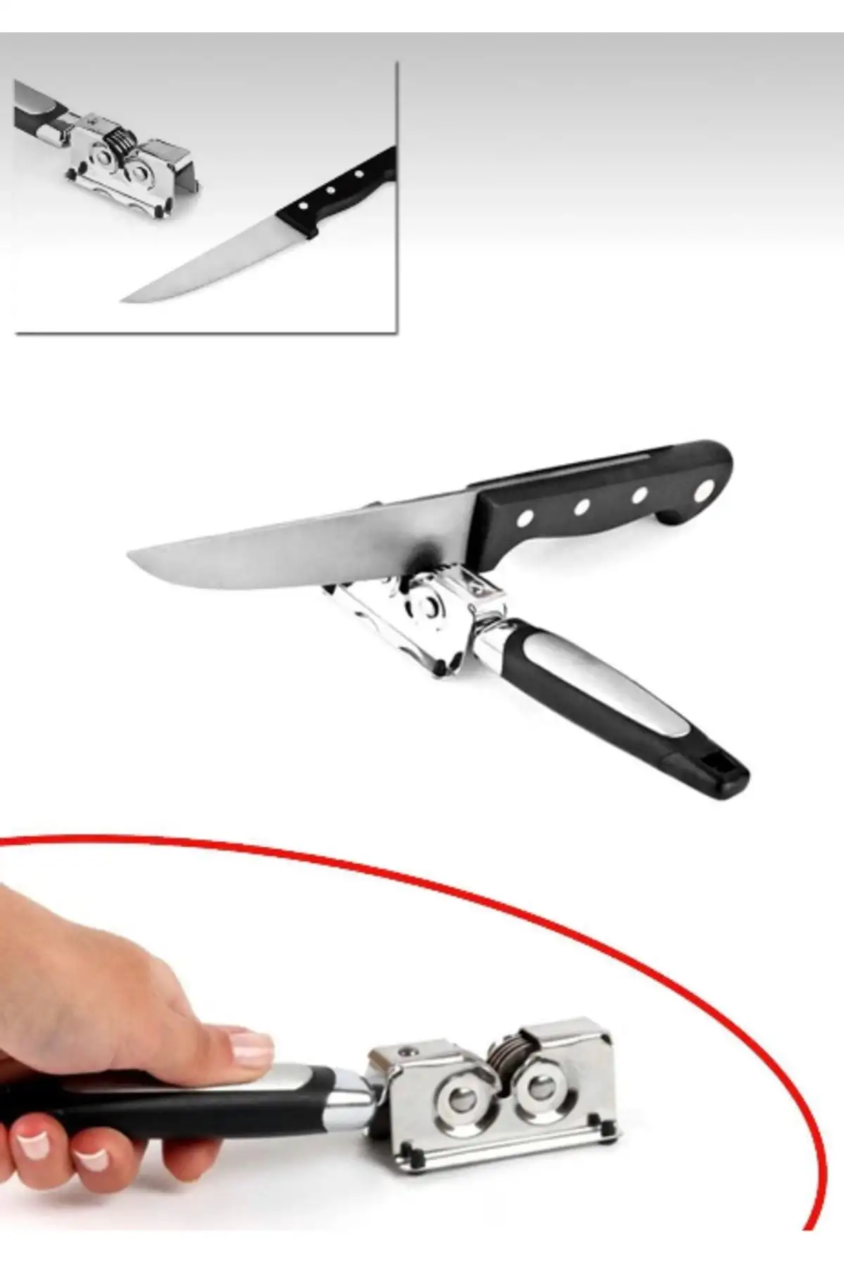 ;paslanmaz çelik bıçak bileyici ;çift taraftan dönerli bileyici sistem hızlıca bileme sağlar. ;çelik kaplama yapısı ile paslanmaz. ;plastik sapı kaymayı önler. ;hızlı ve pratik bir biçimde bıçaklarınızı bilemenize olanak sağlar. ;ürün boyutları : 18 cm ;renk: Siyah, metal