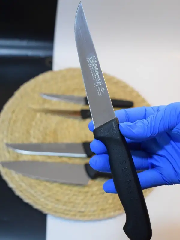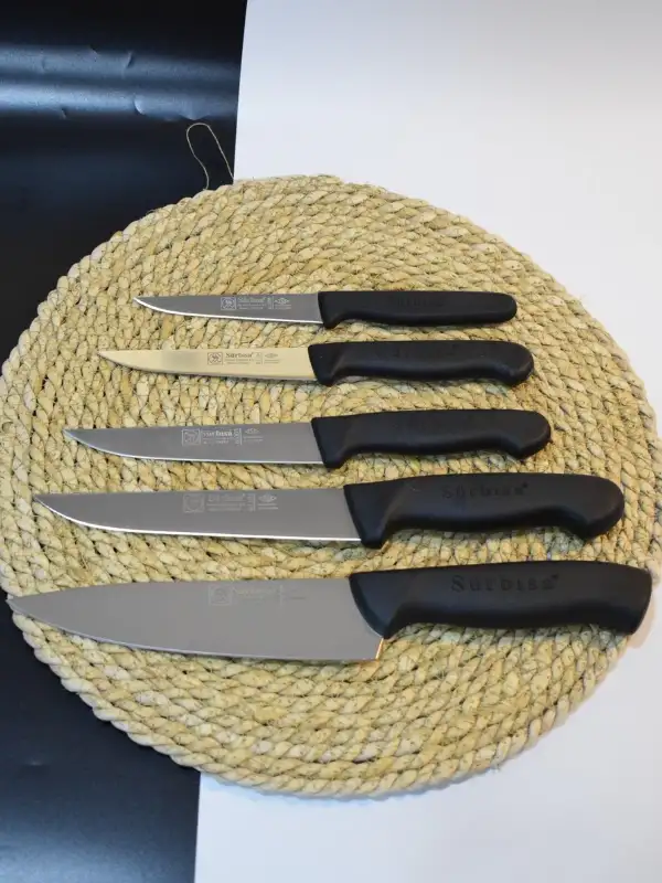- En 2,5 cm- Boy 13,0 cm- Kalınlık 2,5 mm 61170 ŞEF AŞÇI BIÇAĞI - En 4,2 cm- Boy 17,5 cm -Kalınlık 3,0 mm 61005 MUTFAK BIÇAĞI - En 2,2 cm- Boy 12,5 cm - Kalınlık 2,0 mm 61104 MUTFAK BIÇAĞI - En 2,0 cm -Boy 11,5 cm -Kalınlık 2,0 mm61004 SEBZE BIÇAĞI- En 1,8 cm -Boy 9,5 cm -Kalınlık 1,8 mmBıçaklar Siyah Renkte olup. Enjeksiyon sap kullanılmıştır.Mutfakta kullanım için oldukça keyifli tutuş sağlar.Mutfağınız keyfini çıkarmaya Sürmene Şef setiyle çıkarmaya hazır mısınız.1.Bıçaklarımızın üzerine isim yazdırabilir miyiz? Evet, yazdırabilirsiniz. Satın almak istediğiniz ürünün sayfasında yer alan not butonunu tıkladığınızda açılan alanda ürün üzerine metin ekleyebilme seçeneği sunulmaktadır.Buradan istediğiniz yazıyı bize iletebilirsiniz.Önemli: Notlar çok uzun olmamalı,Bıçağın üzerine sığabilecek uzunlukta olmalı