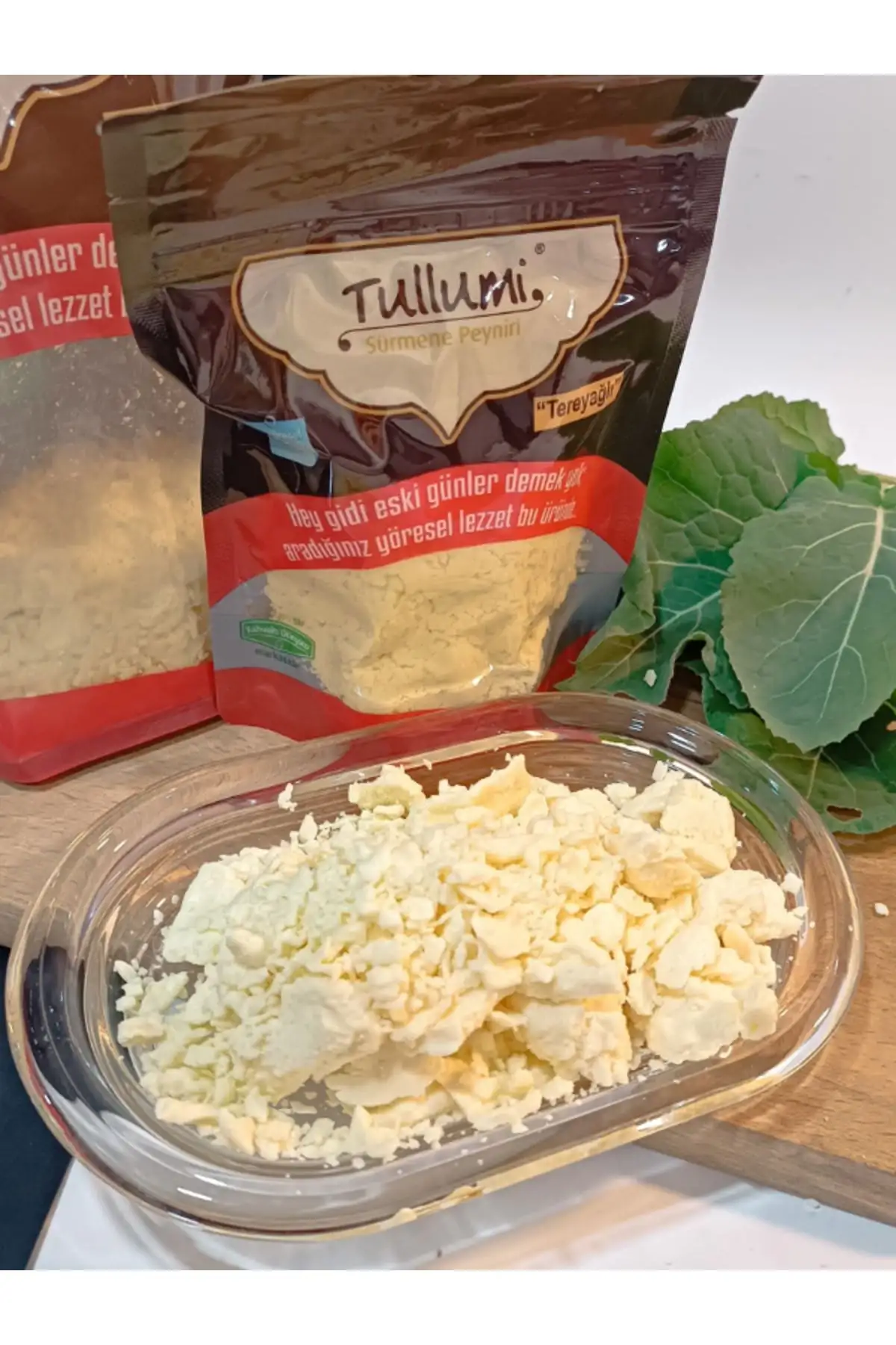 Tullumi Sürmene Peyniri Nedir Tullumi Sürmene Peyniri, Kahvaltı Dünyası markası olmakla birlikte firma mühendislerinin unutulan yöresel tatların hatırlanması aynı zamanda da yeni nesillerin hoşuna gidebileceği yeni bir lezzet yaratma arzusu ve yıllarca süren AR-GE çalışmaları sonucunda ortaya çıkmıştır. Tullumi Sürmene Peyniri, özellikle Karadeniz bölgesinde üretilen 4-5 farklı yöresel peynir çeşidi ile doğal Trabzon Yayık Tereyağının özel bir teknikle harmanlanması sonucu elde edilmektedir. İçeriğinde yüksek oranda Trabzon Yayık Tereyağı içermesi sebebiyle, paketi açıldıktan sonra kendi zipli ambalajında veya hava almayacak vakumlu kaplarda muhafaza edilmesi ve kısa süre içerisinde tüketilmesi önerilir. Ürünün yüksek yağ içeriğinden dolayı açıkta kalması halinde tadında ve kokusunda kısa sürede değişimler gözlemlenebilir. Ürünümüz hammadde olarak doğu Karadeniz coğrafyasının tamamından etkilendiği için zengin bir aromatik lezzete sahiptir. Yöremizin mevsimsel zenginliğinden ve hayvanların mevsimden mevsime değişen beslenme alışkanlıklarından da etkilenen Sürmene Tullumi Peyniri kendi özgü yapısıyla fark yaratmaktadır. Tullumi Sürmene Peyniri, başta tarifine paketinizin arkasındaki QR kodu okutarak da ulaşabileceğiniz Tullumi’li Yumurta olmak üzere, kahvaltı sofralarınızda, böreklerde, salatalarda, poğaçalarda, makarnalarda kullanabileceğiniz gibi meşhur Sürmene Pidesi hazırlarken de fark yaratacaktır. Tullumi Sürmene Peyniri, 0-4 derece aralığında buzdolabınızda muhafaza edilmelidir. Ürün hassasiyeti göz önünde bulundurularak müşterilerimize tüm ürünlerimizde de olduğu gibi yeni üretilmiş ürünler gönderilmektedir. Tullumi Sürmene Peyniri vakumlu ambalajlarda, soğuk zincir taşımacılığa uygun; strafor köpük kutu ve soğutucu jel destekli gönderilmektedir. Tullumi Sürmene Peynirinin Özellikleri Tullumi Sürmene Peyniri, hiçbir aroma katkısı içermeyen doğal bir lezzettir. Tullumi Sürmene Peyniri, yöresel bir lezzete sahiptir ve muadili yoktur. Tullumi Sürmene Peyniri, yüksek oranda tereyağı içerir.